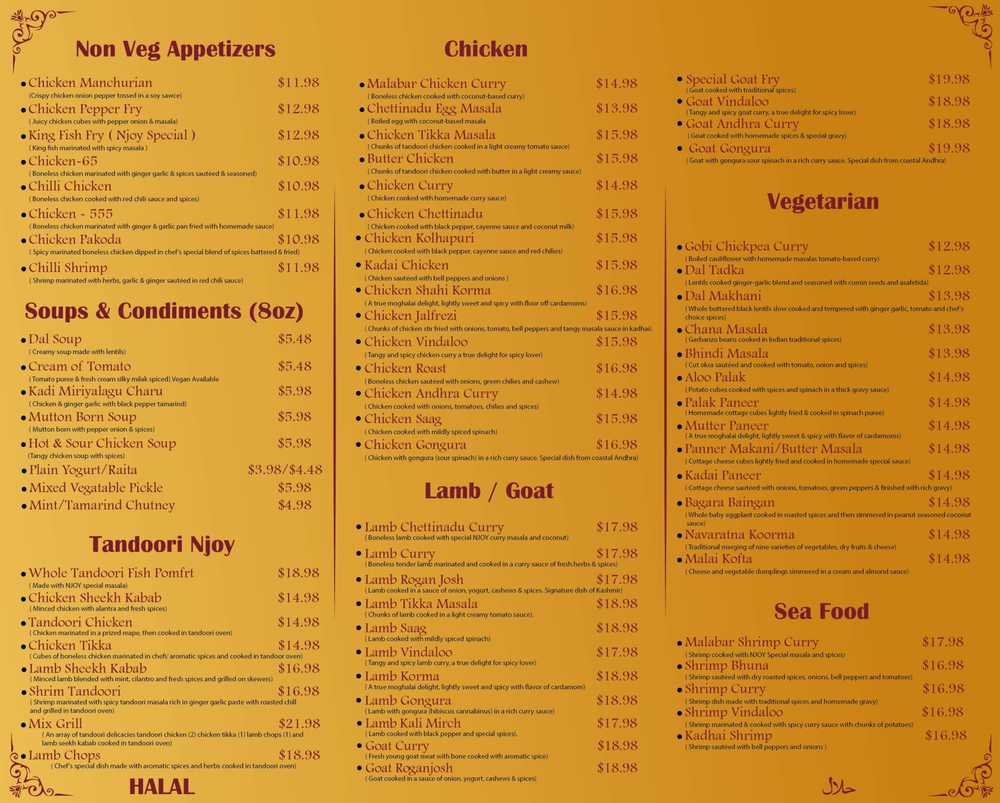 Welcome to Njoy Curry Masala, a culinary gem nestled at 1020 Jefferson St, Lafayette, LA. This vibrant eatery offers an extensive selection of authentic Indian dishes, perfect for those yearning for bold flavors and aromatic spices. Whether you're ordering takeout, dining in with friends, or hosting a private event, Njoy Curry Masala has something special for everyone.